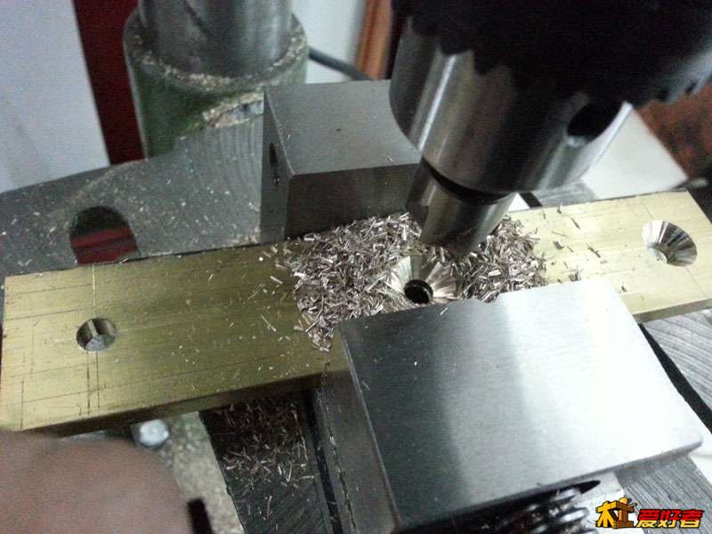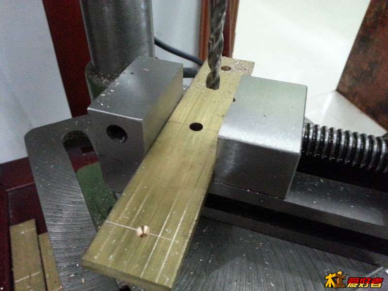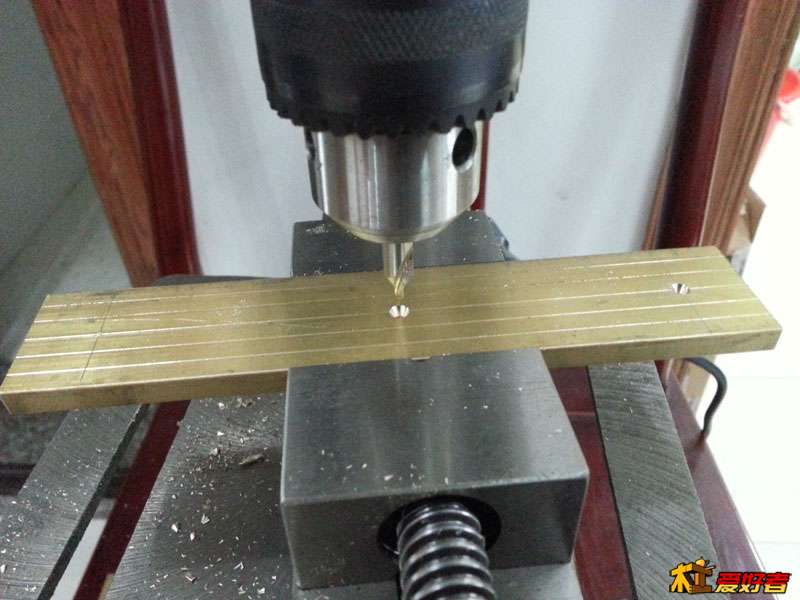 用5.1MM的鉆頭打孔,這個孔不要打穿,我用的銅條是6MM的厚度,就打5.0-5.5MM的深度
