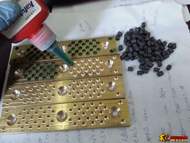 下面開始鑲嵌石墨柱,這里要用到厭氧膠,厭氧膠有很多型號,這里要用到的是粘接圓柱的膠,這種