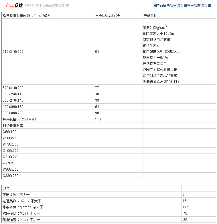 以上為國產(chǎn)石墨參數(shù)表,僅供參考: